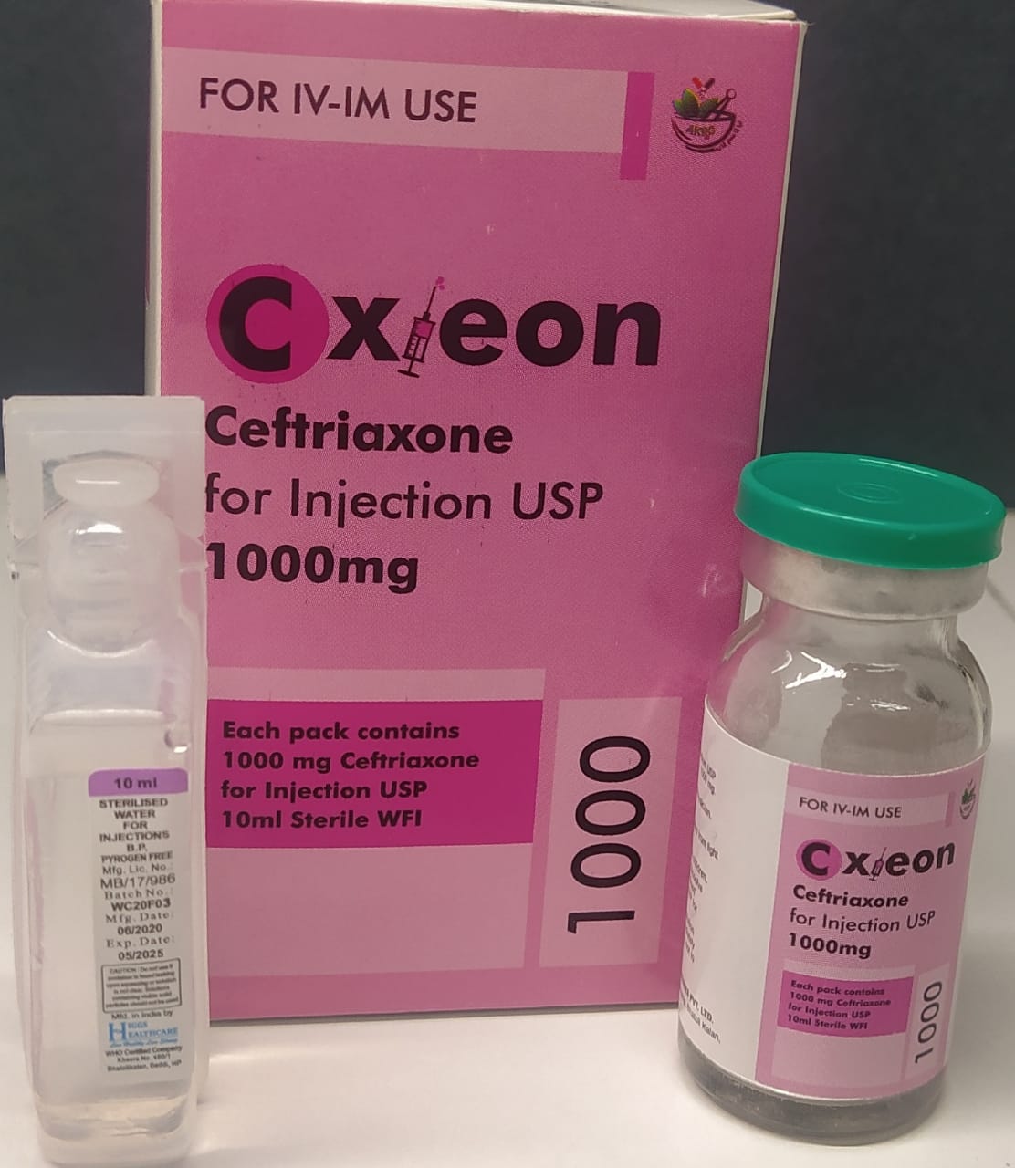 "Each vials contains: Sterile Ceftriaxone Sodium USP eq. to Ceftriaxone 1000 mg." |