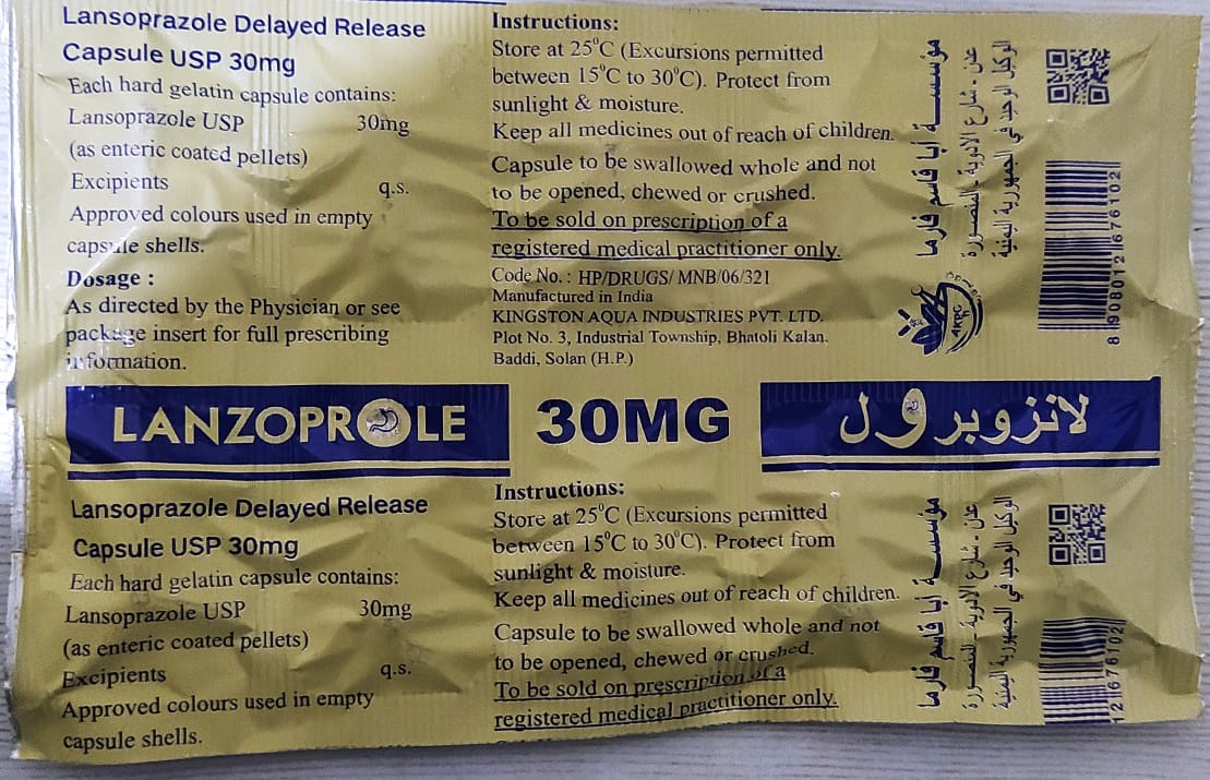 "Each hard gelatin capsule contains Lansoprazole USP 30mg (as enteric coated pellets) Excipients q.s." |