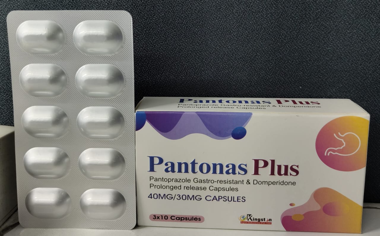 Each hard gelatin capsule contains:Pantoprazole Sodium BP eq. to Pantoprazole (As gastro-resistant pellets) 40mg, Domperidone BP (As prolonged-release pellets) 30mg, Excipients q.s. |