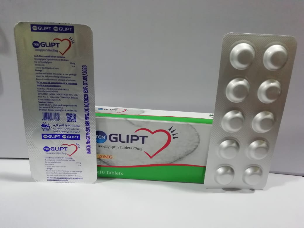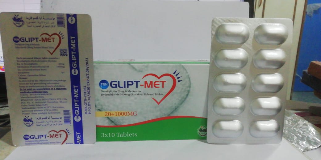 "Each uncoated bilayer tablet contains: Teneligliptin Hydrobromide Hydrate Eq. to Teneligliptin 20 mg Metformin Hydrochloride BP 1000mg (In sustained release form) Excipients q.s. Colour : Approve colour used" |
